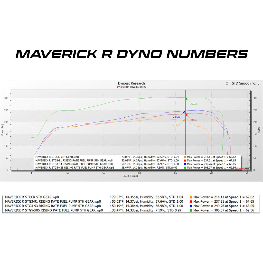 - RISING RATE 340LPH CONVERSION KIT: Requires modifying and reusing the OEM Maverick R Fuel Assembly including OEM fuel pickup, float, gasket and cap