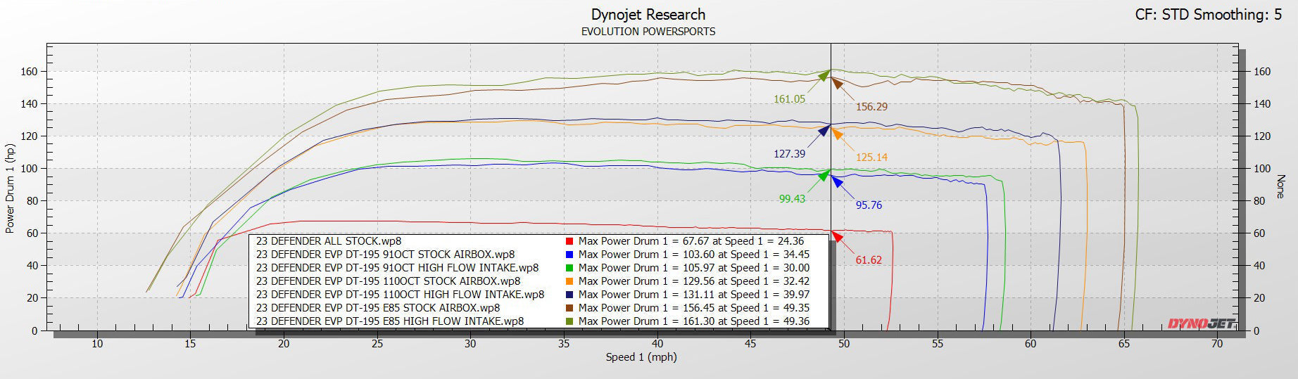 The Can-Am Defender is arguably one of the best utility side-by-sides on the planet. And after rigorous testing in the EVP dyno labs and testing grounds, we've taken it to an entirely new level with 56% (DT-130) or 137% (DT-195) more power than stock plus loads of additional tune features that flat-out rewrite the book on Defender performance. Trust us; you won't believe it's the same machine.