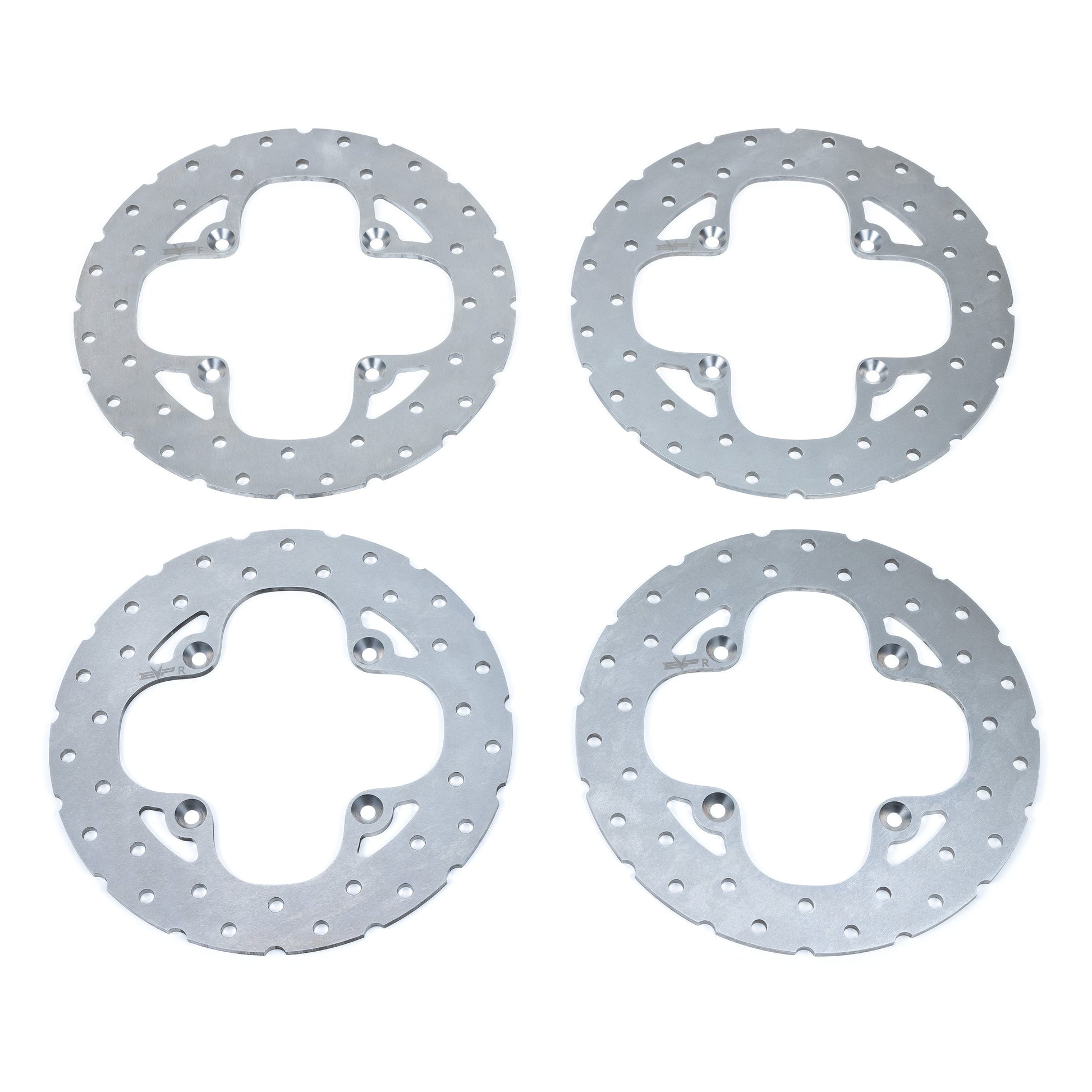 The new EVP Big Rotor Brake Kit delivers the stopping power your full- or mid-size utility side-by-side demands, reducing 60-0 MPH stopping times by more than 15% and shortening stopping distance by more than 18%! Our bolt-on brake rotor kit provides 16% more surface area up front and over 11% more in the rear compared to stock, coupled with a heavier duty thicker profile (4.5 mm, OEM vs 5 mm, EVP). The EVP Big Rotor Kit delivers a substantial improvement in stopping power while also enhancing heat dissipation to prevent premature wear on brake pads and calipers.
