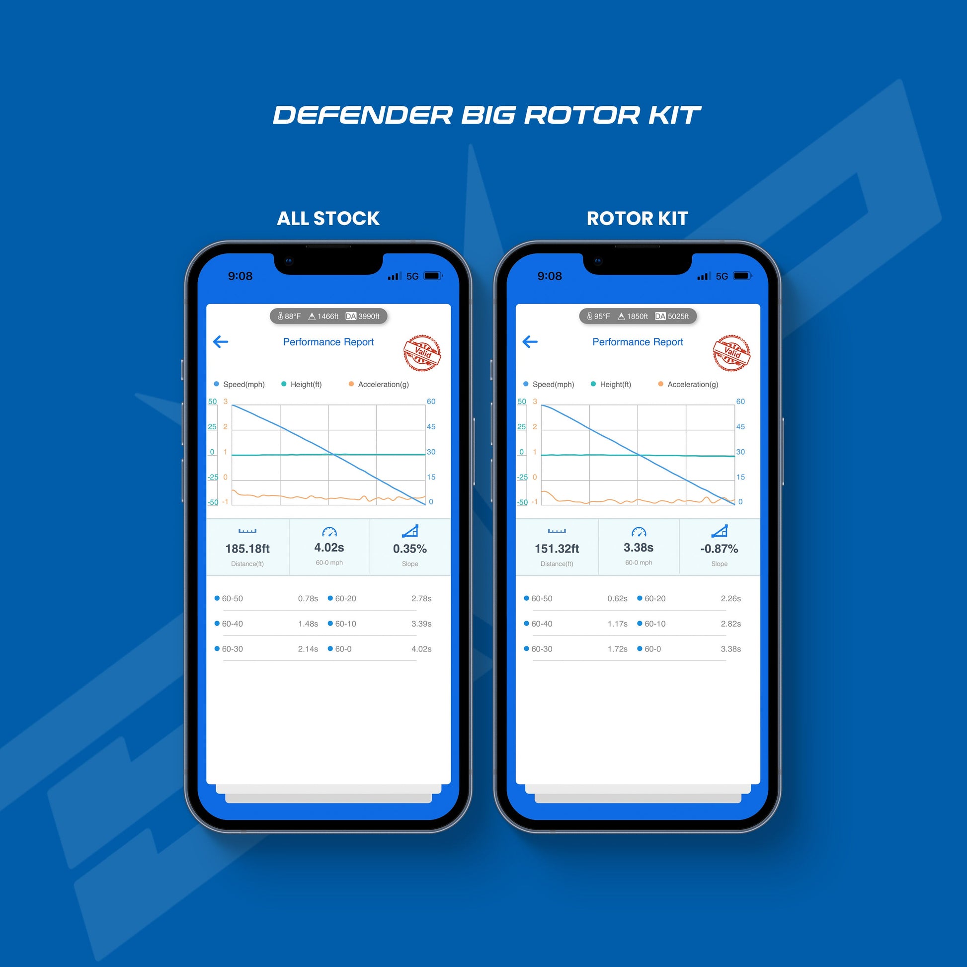 - Kit includes front and rear caliper adapter brackets (reuses OEM brake calipers and pads)