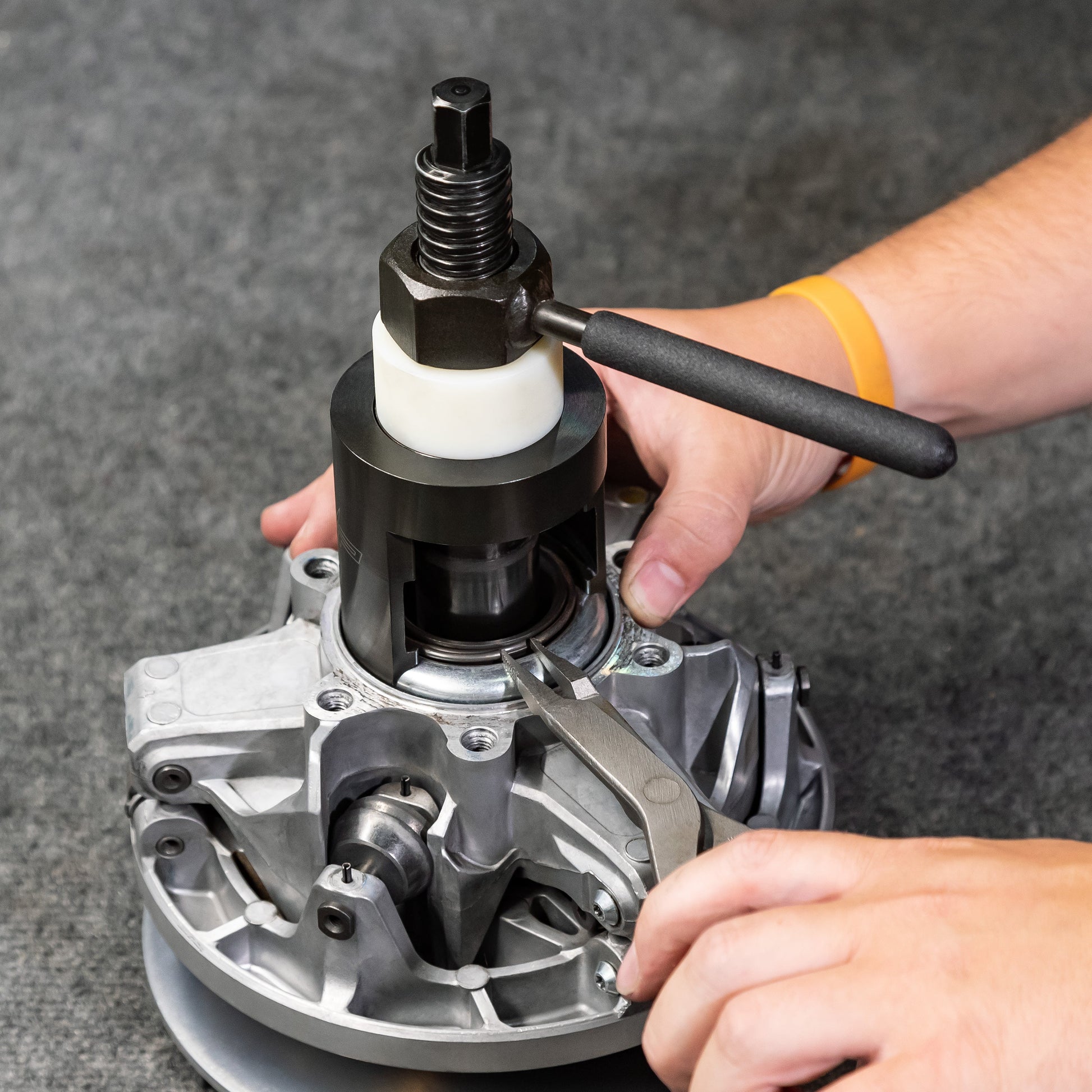 - EVP Shift-Tek 3-Arm Primary Compressor Tool to help compress the movable sheave safely without risking damage to other clutch components, making weight adjustments easier than ever (designed to be used with Threaded Rod/Handle).