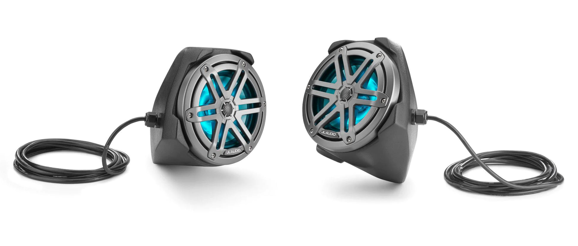 Constructed from 100% fiberglass, each sealed enclosure features a rugged, weatherproof finish and houses a high-performance, 6.5-inch, marine-grade coaxial speaker with built-in RGB LED lighting. All mounting hardware is included, along with ten feet of wiring for each pod, for a secure, great sounding installation.