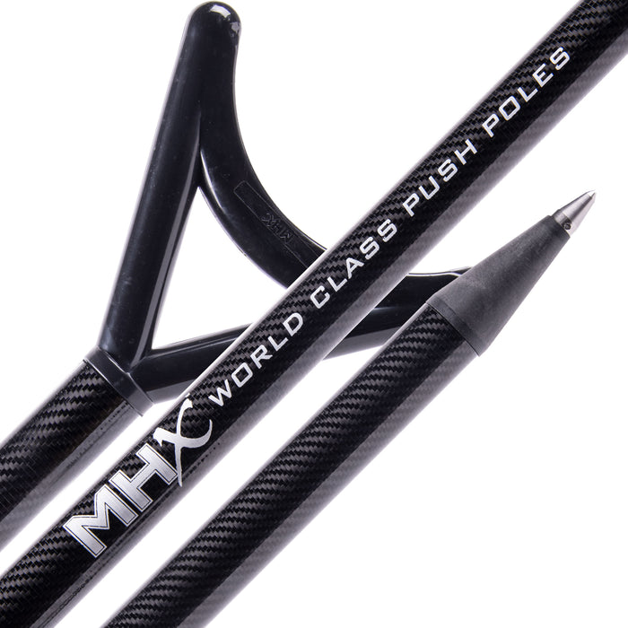 100% Carbon 21-foot push pole. The construction of the MHX push pole is a combination of uni-directional and off-axis Carbon fibers which gives you the greatest amount of power in the push but maintains excellent hoop strength during load.