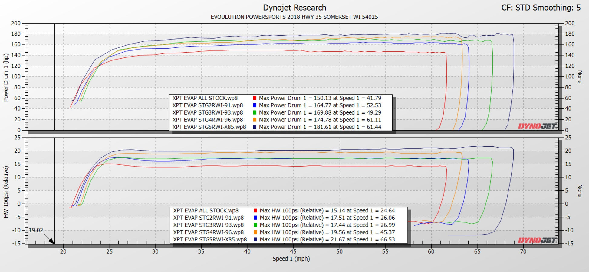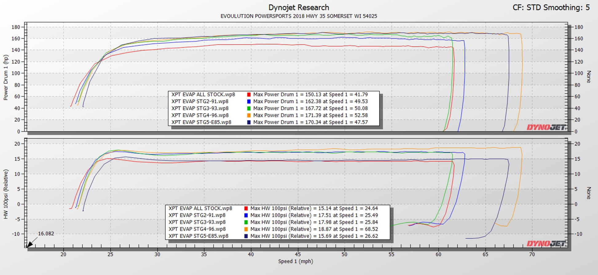 | STAGE 5RWi-X85 | E85 | 21.6 | 182 | 221 | 1300cc Injectors, Wastegate Actuator |