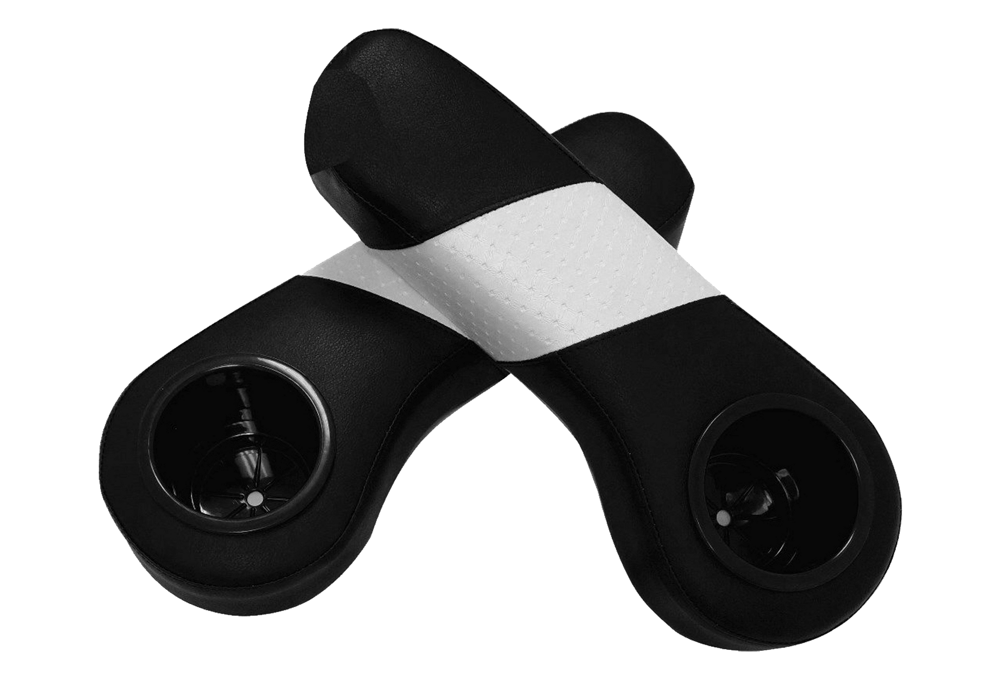STEELENG SGC Armrest Cushions (Pair) w/Cup Holders for Rear Seat Kits – Two-Tone – Black/White-One Stripe